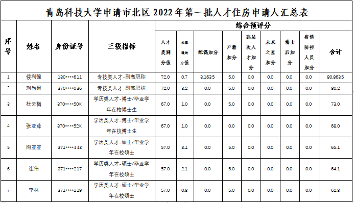 永利官网申请青岛市市北区2022年第一批产权型人才住房人员情况公示