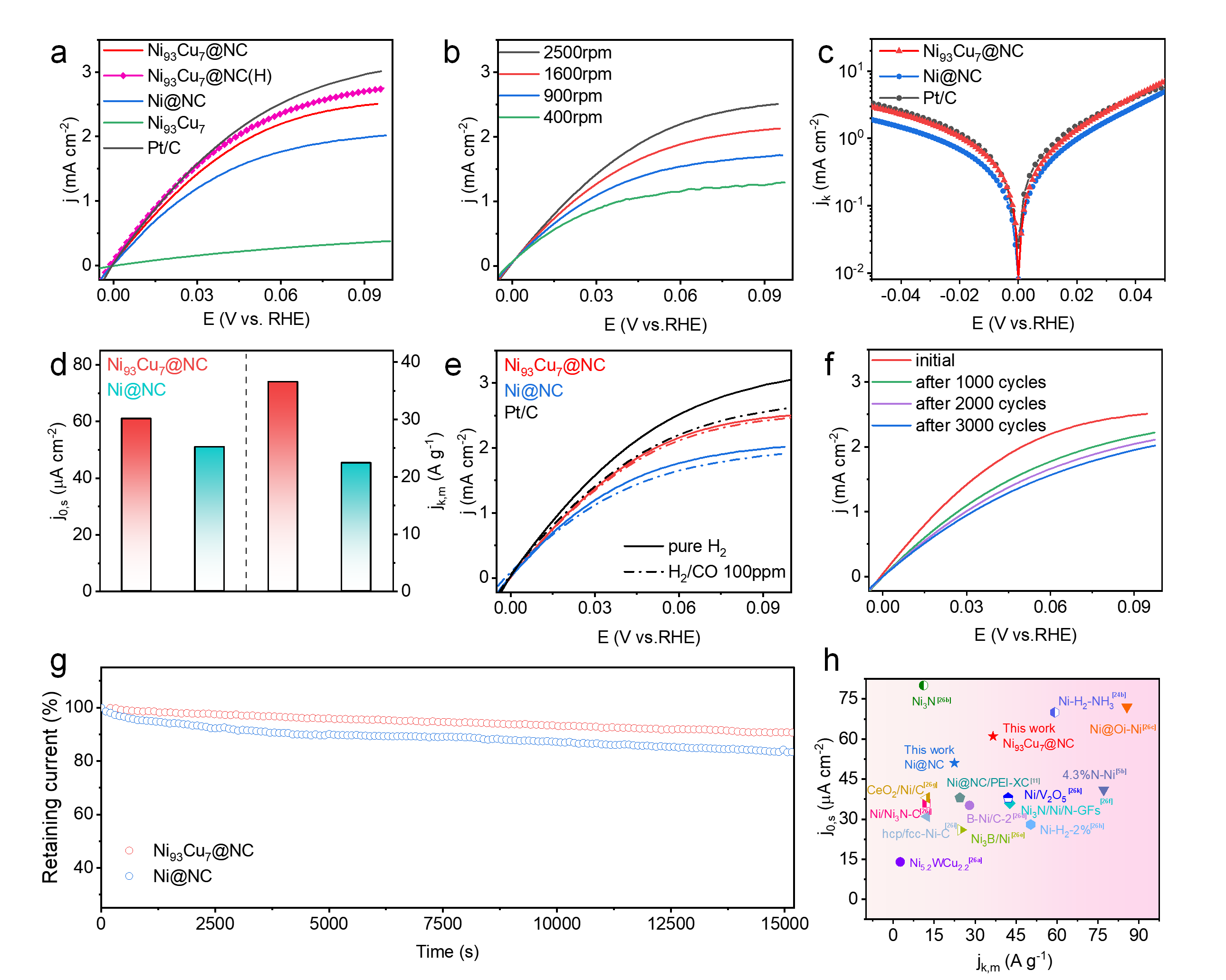碱性阴离子交换膜燃料电池(AEMFC)是基于阴离子交换膜的一种新兴燃料电池技术,其有望从根本上摆脱燃料电池对贵金属催化剂的依赖,可大幅降低燃料电池的成本。然而,在碱性电解质中,阳极氢氧化反应(HOR)的动力学过程比在酸性电解质中低2-3个数量级。因此,开发低成本、高活性、高稳定性的HOR电催化剂对于促进AEMFCs的实际应用非常迫切。