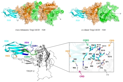图2 VNAR-5G8与TROP-2蛋白结合的3D模型。