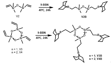 进展二:为了进一步研究Si-O-Si骨架构筑的多核硼在环氧开环聚合中构-效关系,他们以硅氧烷为前体,成功合成了结构明确的二硼烷(V2B)、三硼烷(V3B)和四硼烷(V4B)催化剂(图6)。