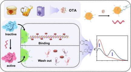 食品安全已成为全球关注的焦点。赭曲霉毒素A(OTA)作为广泛存在于谷物、葡萄酒等食品中的强致癌物,其痕量污染检测亟需高灵敏性与高可靠性的分析方法。尽管CRISPR/Cas系统因其高特异性与可编程性在生物传感领域展现出巨大应用潜力,但在非核酸靶标检测中实现高灵敏、低干扰检测仍面临关键技术瓶颈,亟需进一步突破。