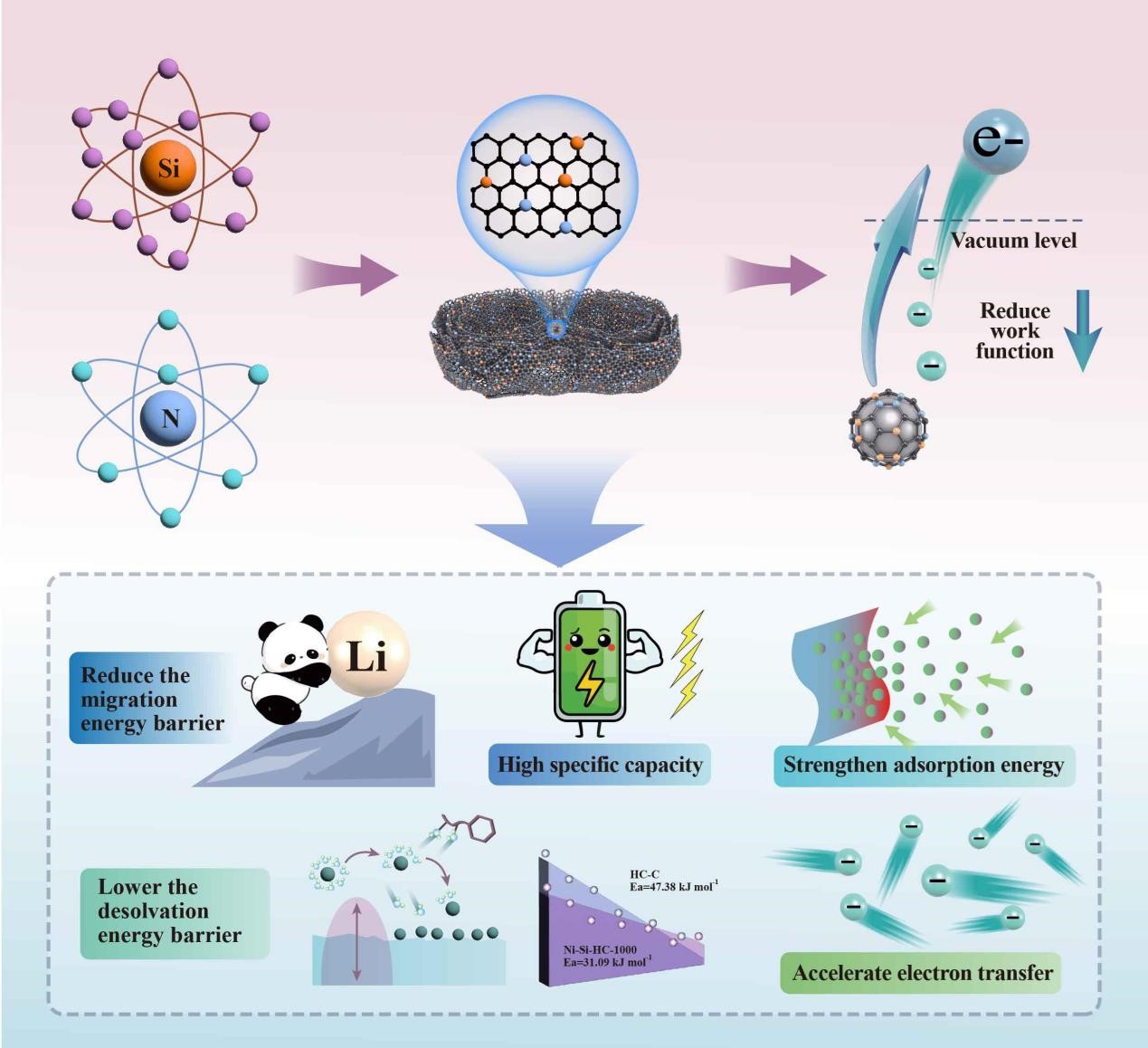 近日,77779193永利官网朱晓东/木天胜团队在《Advanced Functional Materials》期刊上发表了题为“Tailored Work Function by N, Si Co-Doping Enables High-Performance Hard Carbon Anode for Lithium-lon Batteries”的研究论文(中科院一区,影响因子:19)。化工学院研究生宋佳瑶为论文第一作者,朱晓东教授、木天胜副教授为论文共同通讯作者。